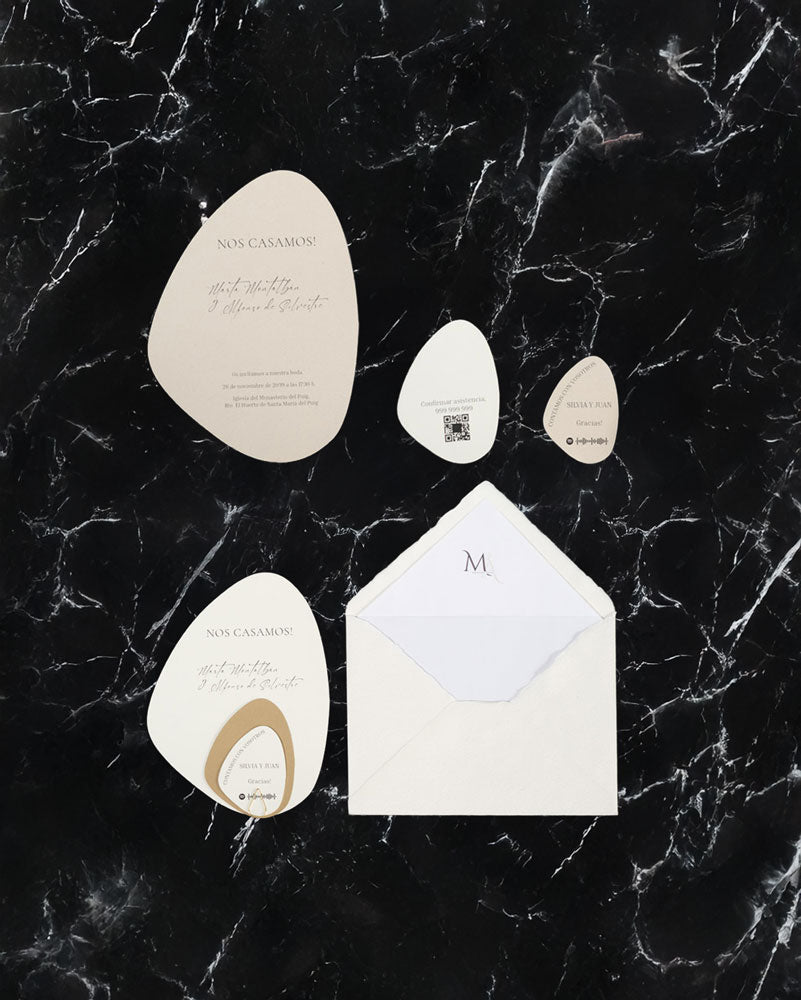 Papelería nupcial completa: Invitaciones, seating plan, menús, etiquetas, tarjetas de agradecimiento y cada detalle que tu boda necesite.