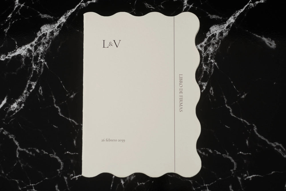 El Libro de firmas de boda “Recuerdo” está diseñado para atesorar las palabras, dedicatorias y mensajes más especiales de vuestros invitados. Su formato artesanal, elaborado en papel premium de alto gramaje y con un diseño elegante de ondas en la cubierta, convierte cada firma en un recuerdo imborrable de vuestro gran día.